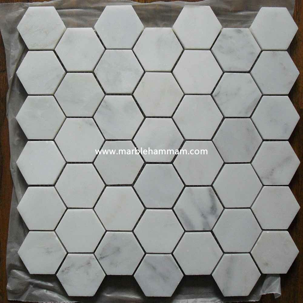• Carrara White Hexagon Mosaic Tile